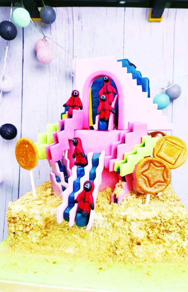 近年她爱好制作翻糖蛋糕,刚开始接触烘培时,她的蛋糕做得不好,但是她一有空就抓紧时间练习,让自己的实力堪比专业的蛋糕师傅,并且凭借栩栩如生的翻糖蛋糕获得翻糖蛋糕国际金奖。2021年12月,她再秀翻糖手艺,为外甥女复制《鱿鱼游戏》造型蛋糕,蛋糕各处都精准抓住剧中细节。