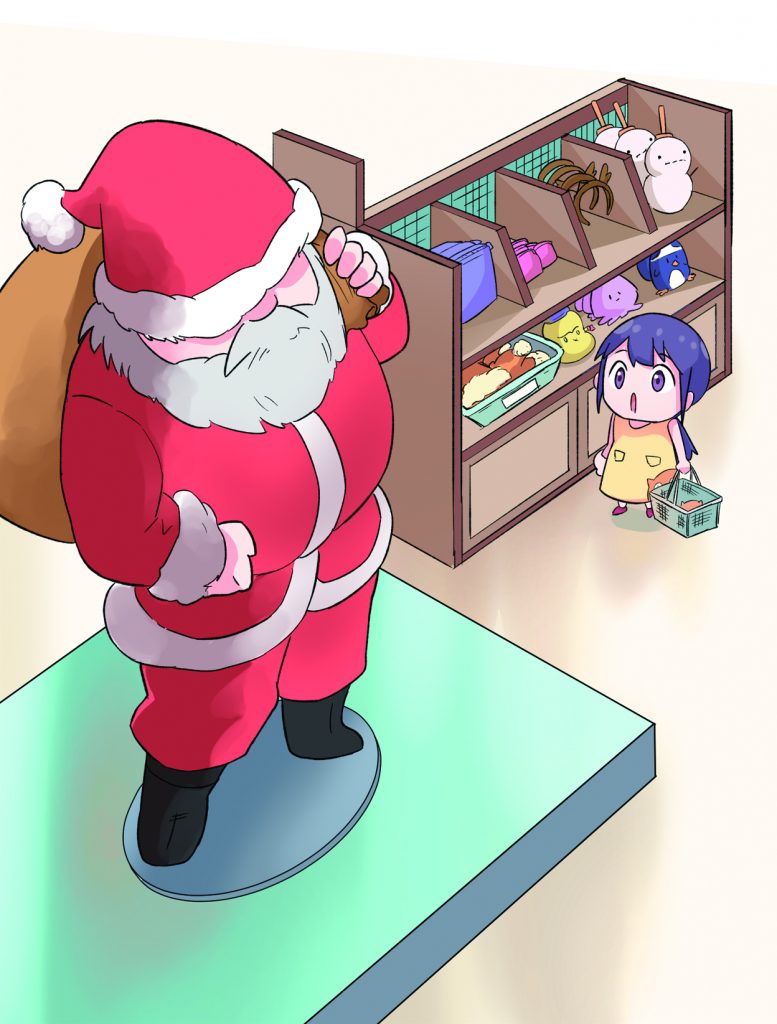 吵吵闹闹之际,小欣注意到陈列柜旁边,立着一个高大的圣诞老人,背上扛着一个礼袋,满脸笑容,真是可爱。“圣诞派对上,如果有一个圣诞老人,那该有多好!”丽娟看了一下价目表:“哗!好贵!小欣,你还是放弃这个念头吧!”一边拉着她走了。