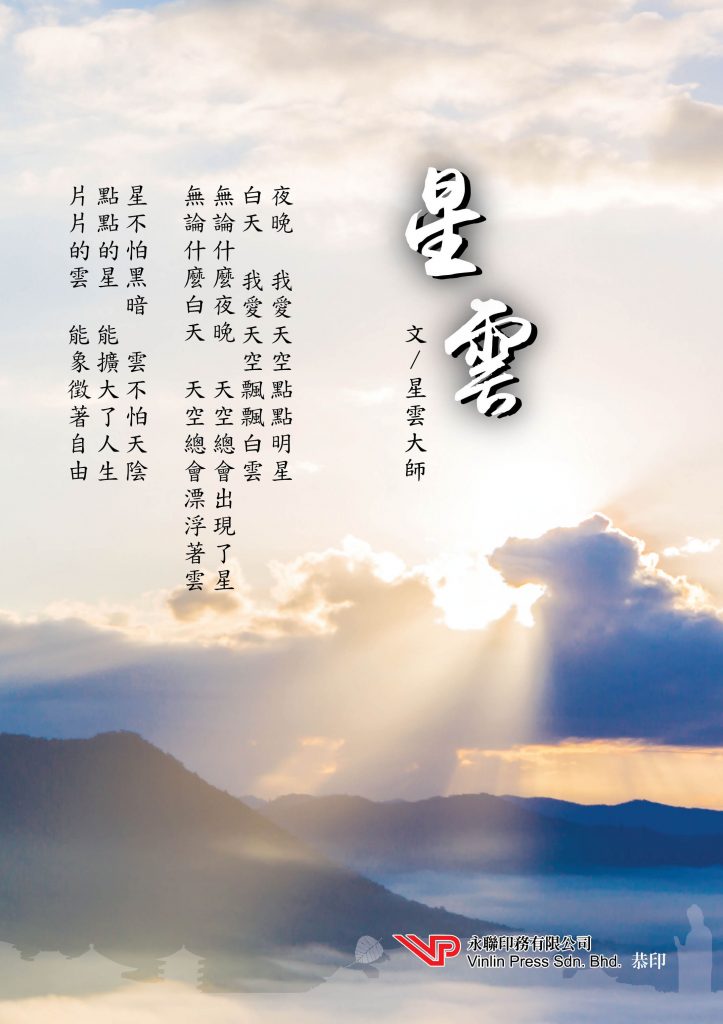 2 Mar 2023 【诗歌】星云 by pumen editor | posted in: 佛学专栏, 星云大师 | 0 出刊日期:01-03-2023 ** 如需引用或分享普门的内容,请注明出处,并附上原文的链接。 欢迎大家分享