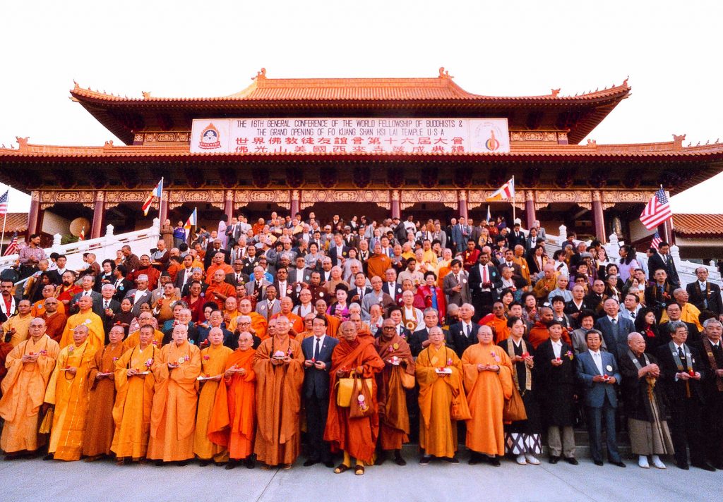 1988年西来寺主办「世界佛教徒友谊会」,此为第一次跨出亚洲举办,首次两岸共同参与,也是首次最多西方人士与会的纪录。(人间福报资料照片/图)