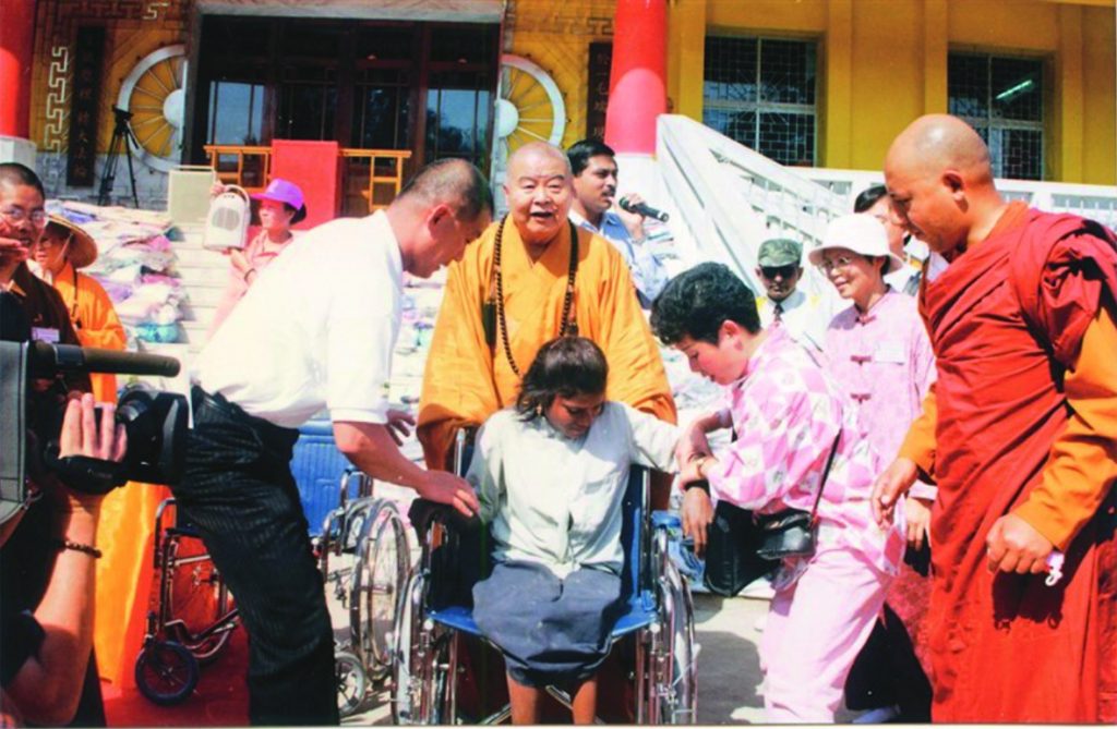 1998年2月15日,大师于印度菩提伽耶传授「国际三坛大戒」及关怀当地民众,发放赈济金。