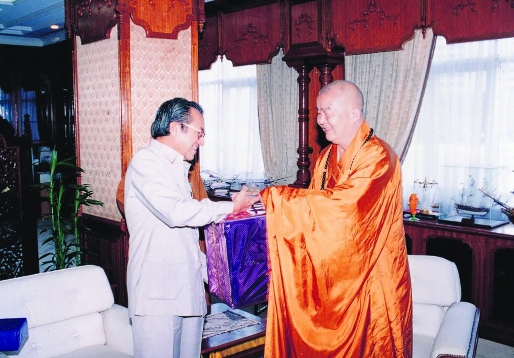 左图:媒体问及马哈迪为什么会赠予拐杖,大师幽默回答:「因为他知道我是老和尚嘛!」1998.5.5