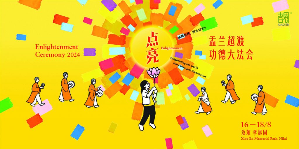 8月16至18日在森美兰汝莱孝恩园举行的「盂兰超度功德大法会」,孝恩集团以「点亮」为主题概念,旨在通过法会的超度功德,普惠阴阳两界挚爱的亲人,祈福生死两相安。同时,现场也将设置一个生命教育展区,向孝恩的主家们宣导生命教育。