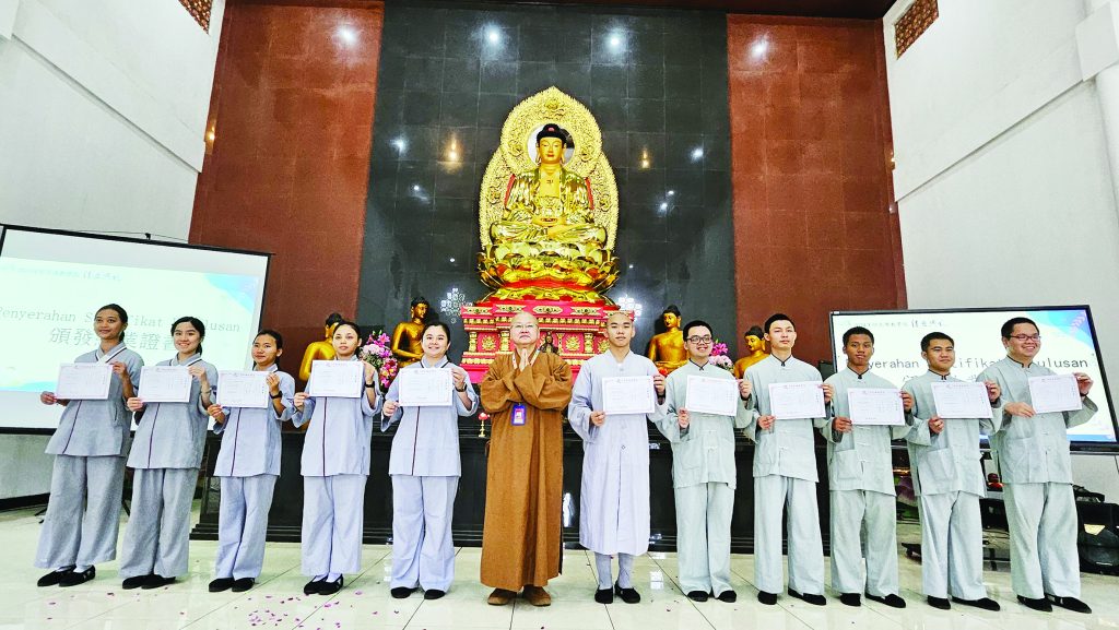 时间来到2024年6月,佛光山印尼佛教学院正式成立,以观音禅寺作为校舍,开办2个月的短期预备班。首次招生吸引25名青年报名,经过面试与筛选,录取11位学生。2个月的课程结业之后,当中有4人到佛光山丛林学院继续进修,其中两位已经剃度出家。