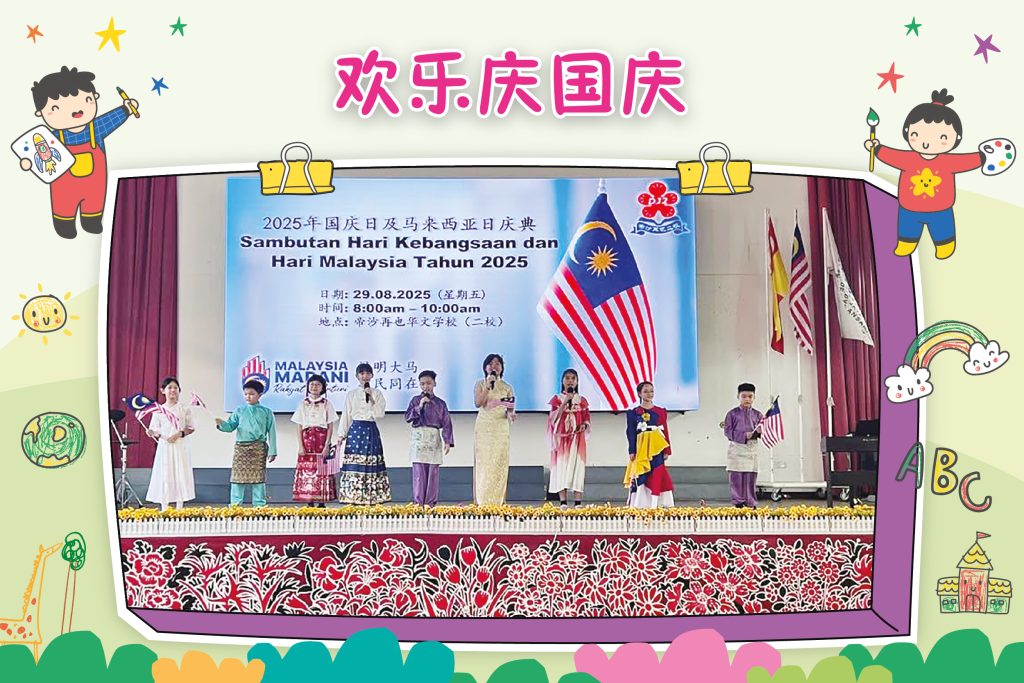 哇,校园好热闹!为了庆祝马来西亚独立与国庆,帝沙再也国民型华文学校(二校)举办了国庆日庆典,上下午两场约1800名学生参加。节目丰富多彩,不仅有传统服装比赛,还有歌舞表演,全场笑声连连、掌声不断,整个校园洋溢着欢乐。通过表演,同学们展示了团结、进取和关心社会的精神,让节日气氛更加浓厚。8月29日这一天,大家不仅表达对国家的爱,也展现了团结友爱的精神,让国庆节开心又难忘!