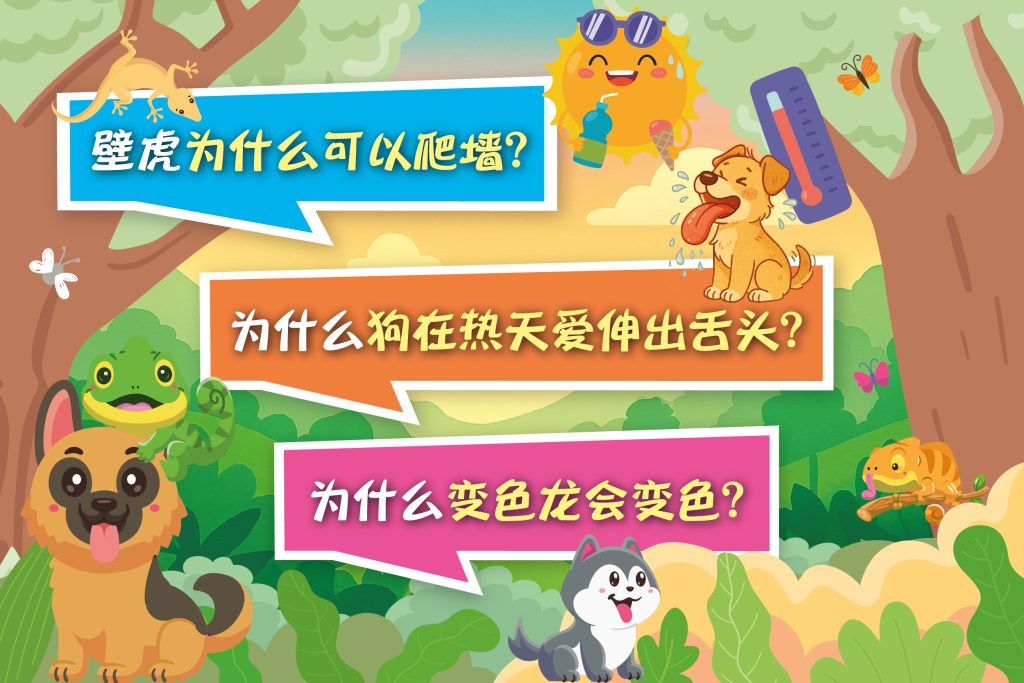 动物世界真的很奇妙!小朋友们,我们在日常中看到壁虎,你会惊讶壁虎为什么爬墙不会掉下来吗?为什么狗在热天总爱伸出舌头?为什么变色龙会变色?让我们一起走入动物世界,探索这些奥秘吧!