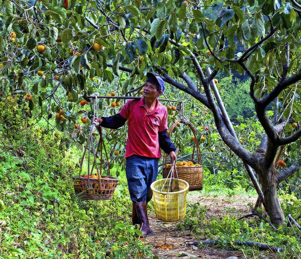 农民肩挑两篮熟透的柿子,步伐稳健却不迟疑。阳光尚未转暖,风已经先一步抵达,催促着所有动作必须到位。晒柿饼的季节很短,没有多余的等待空间,每一个环节都要与风同步。柿子必须在最适当的时刻被采下、搬运、削皮、吊挂,让自然完成接下来的转化。