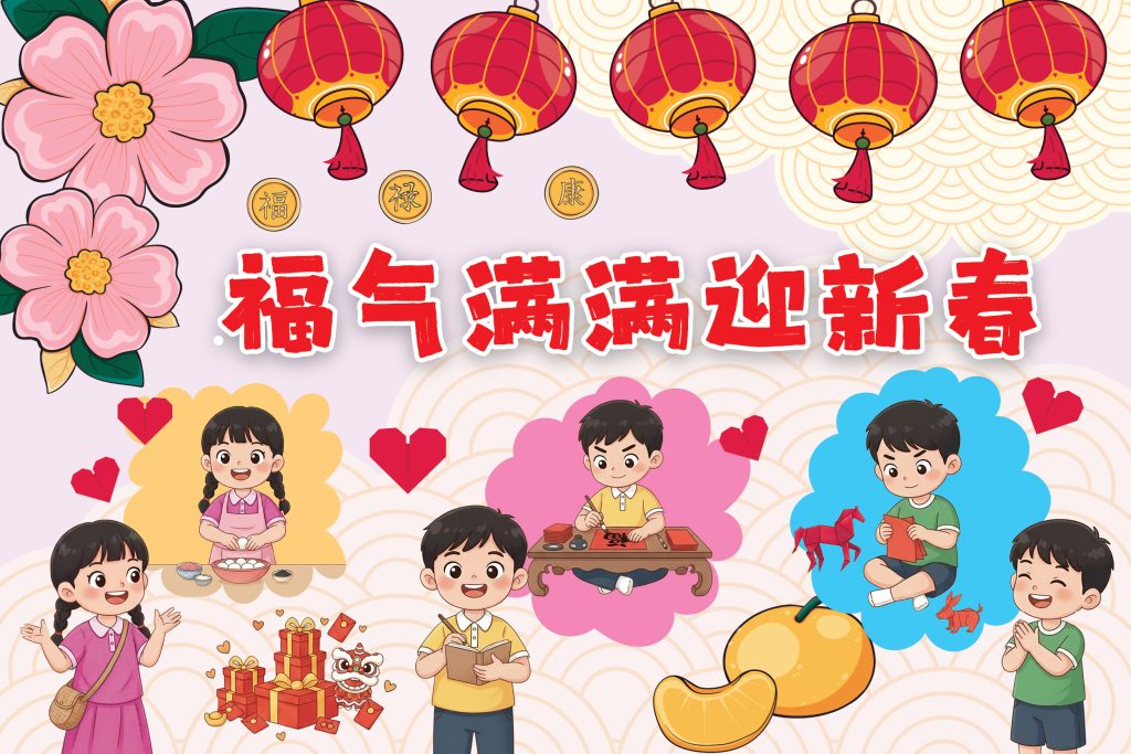 新春将至,校园里到处洋溢着节日的气息。“今年我们不光要放烟花、吃年夜饭,还要做10件小事,集满新年福气,迎接有意义的新年!”谨阳、李蔚和子谦3人兴奋地聚在一起讨论…